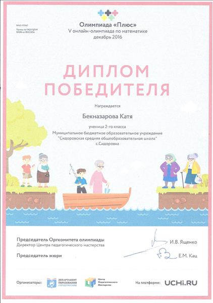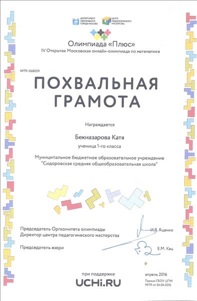 | Диплом победителя II Международной онлайн олимпиаде по русскому языку "Русский с Пушкиным" | UCHI.RU | 05.04.2017 | Файл |