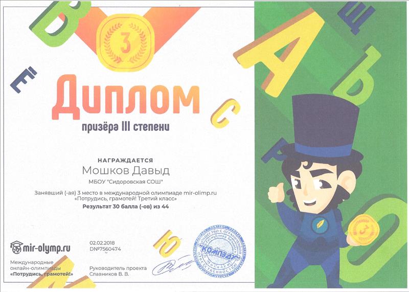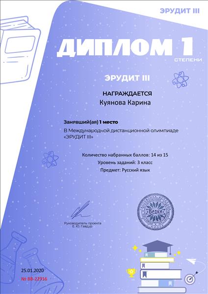 | Диплом за участие в Международной олимпиаде по русскому языку | Компэду | 25.01.2018 | Файл |