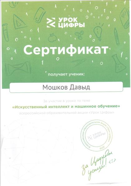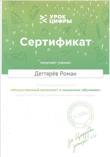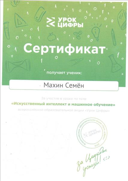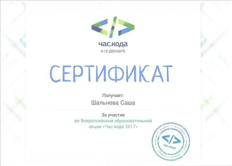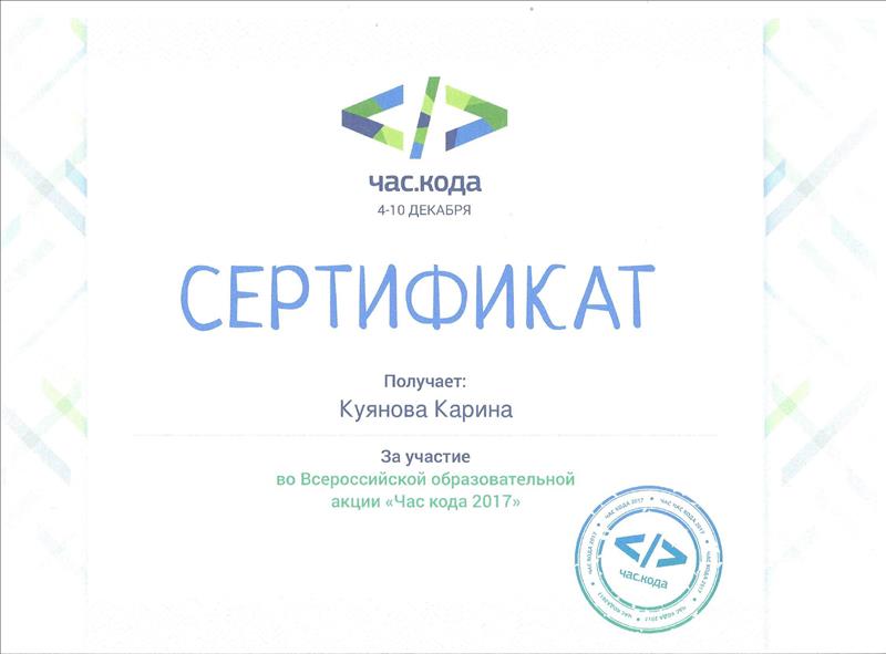 | Сертификат за участие во Всероссийской акции "Час кода" | | 20.10.2017 | Файл |
