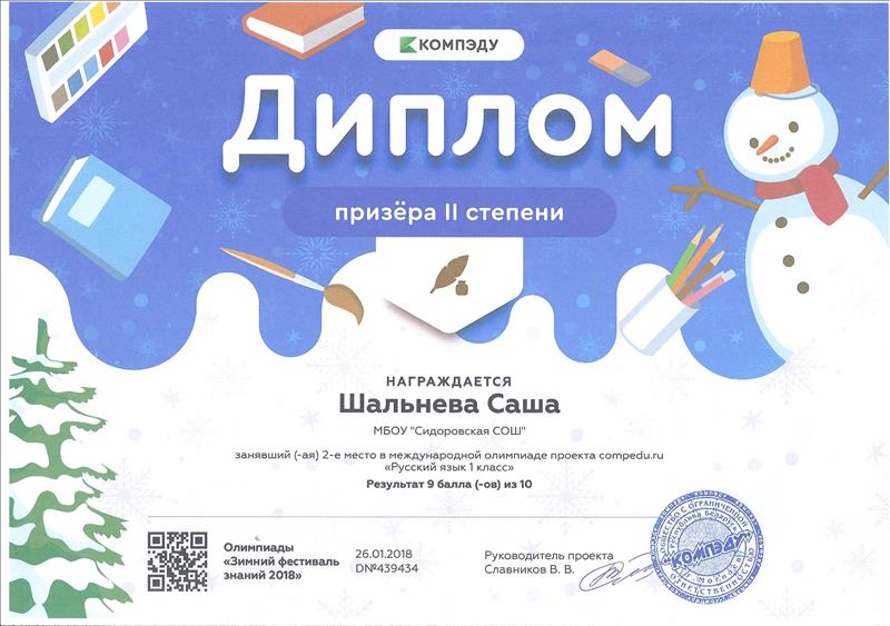 | Диплом за участие в Международной олимпиаде по русскому языку | Компэду | 26.01.2018 | Файл |