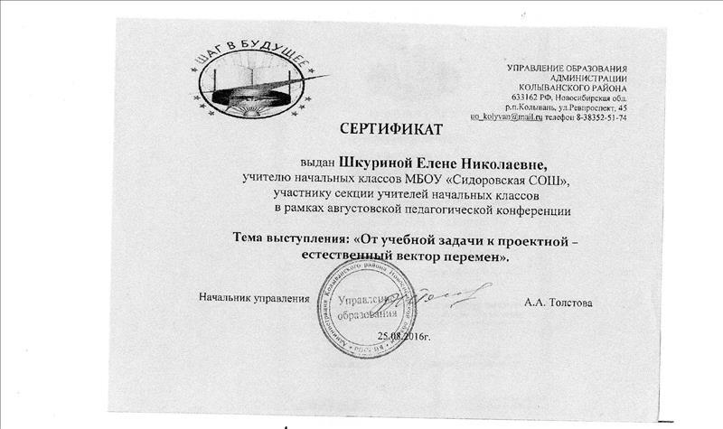 Сертификат за выступления на августовской конференции
